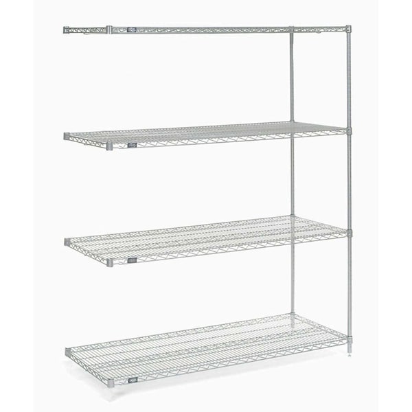 . Add-On Shelving Units allow unit expansion to make the most of storage space. Includes 2 posts with leveling feet, 5 shelves, Snap-On sleeves and S-hooks to join units. Poly-Z-Brite features a true powder-epoxy over zinc-chromate electro-plating that ensures a strong durable finish and handles temperature and moisture extremes well. Open design maximizes air and light circulation and minimizes dust accumulation. Shelves easily adjust without tools and align accurately at 1 increments. Shelf clips snap on post, allowing shelf collar to slide over for a secure fit.