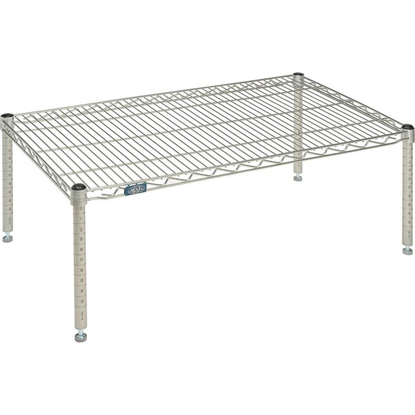 Nexel Platforms keep products and merchandise off of floor and clearly visible. Ideal for stock room or walk-in refrigerator. 14H platform consists of four posts, one shelf, plastic shelf clips and adjustable floor levelers.