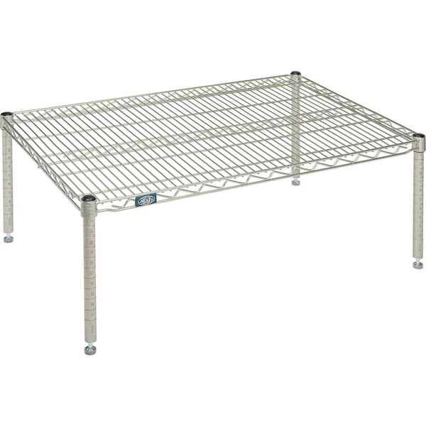 Nexel Platforms keep products and merchandise off of floor and clearly visible. Ideal for stock room or walk-in refrigerator. 14H platform consists of four posts, one shelf, plastic shelf clips and adjustable floor levelers.