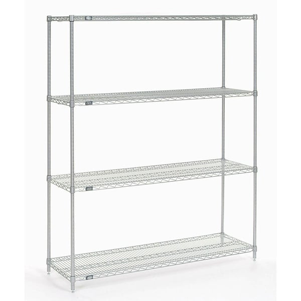 These NSF Approved shelving unit adjusts and expands easily to cater to all storage needs. The open wire construction reduces dust build up and allows air and light penetration. Easy slide-off shelf surface permits full access to inventory. These type 304 stainless steel shelving units are easily assembled, adjust without tools and align at 1 increments on numbered post. Starter Unit includes 4 posts with leveling feet and 4 shelves with snap-on sleeves to secure shelves to posts.