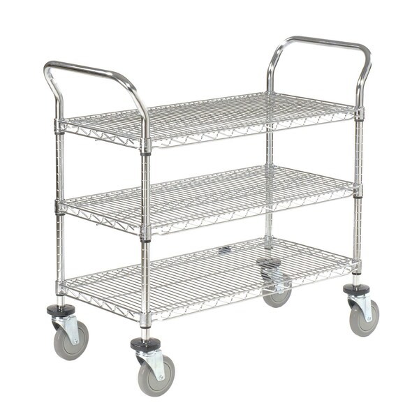 Open design offers convenient 4-way access while minimizing dust accumulation and maximizing light and sprinkler penetration. Shelves can be easily adjusted on 1 inch increments with numbered markings. Rolls smoothly on 5 polyurethane stem casters. 1200 lb load capacity. Bright, chrome over nickel electro plating creates a brilliant high gloss finish. Easy assembly. NSF approved.