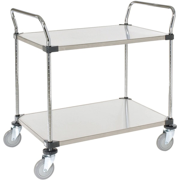 Steel Utility Cart features 16-gauge steel shelves with 2 deep hemmed trays.