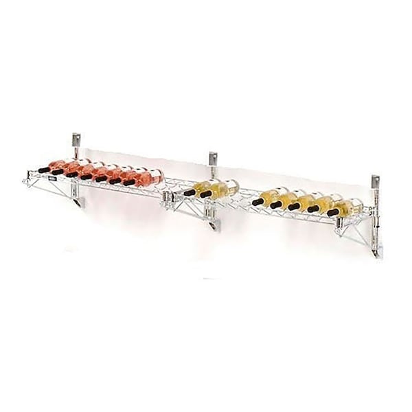 Wine Bottle Rack, Double Wide 2 Shelf Wall Mount 36 Bottle 72W x 14D x 14H