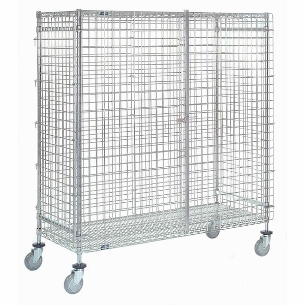 Wire Security Truck, Chrome, 24inW x 36inL x 69inH, Polyurethane, 4 Swivel Casters