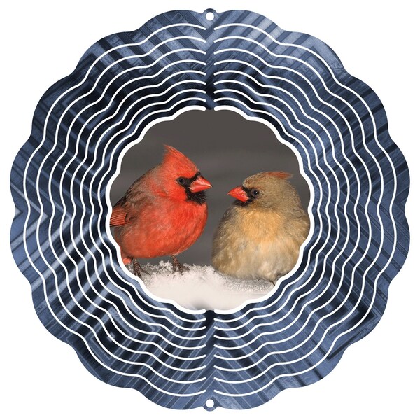 Our outdoor metal yard art has always been among our most popular products! Our Cardinals wind spinner is a great looking piece of outdoor metal yard art! Featuring a beautiful "Cardinals" image on our classic wind spinner. Like all our products, our Cardinals Wind Spinner is powder coated for maximum rust resistance, making it ideal for use as outdoor metal yard art! The Cardinals wind spinner comes with a swivel on top so all you have to do is buy it, fan it out, hang it up, and watch it spin in the wind! Dimensions: 10 in. L x 10 in. H x 1 in. D Weight: 1lb