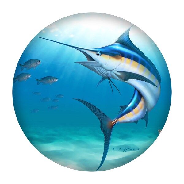 Our round wall art with the "Marlin" image. Laser cut from steel. Powder coated for weather resistance and durability. Dye-sublimated for a vibrant full image. Hanging brackets are attached to the piece for easy hanging of the product. Dimensions: 12 in. L x 12 in. H x 1 in. D Weight:1 lb