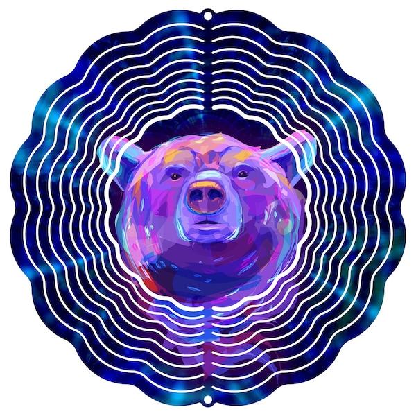 Our outdoor metal yard art has always been among our most popular products! Our Indigo Bear wind spinner is a great looking piece of outdoor metal yard art! Featuring a beautiful "Indigo Bear" image on our classic wind spinner. Like all our products, our Indigo Bear Wind Spinner is powder coated for maximum rust resistance, making it ideal for use as outdoor metal yard art! The Indigo Bear wind spinner comes with a swivel on top so all you have to do is buy it, fan it out, hang it up, and watch it spin in the wind! Dimensions: 16 in. L x 16 in. H x 1 in. D Weight: 3lb