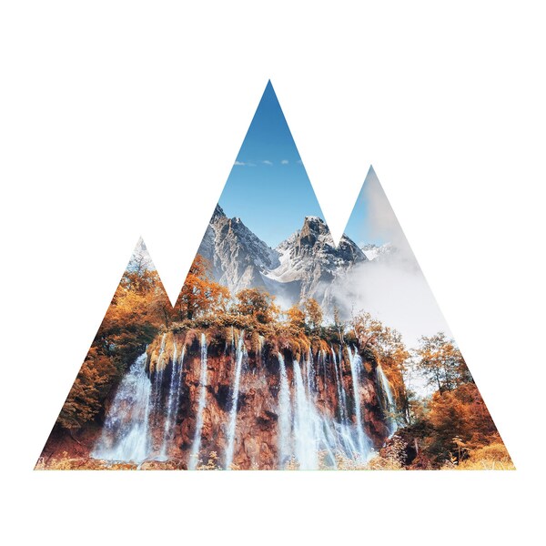 Our three peaks wall art with the Plitvice image. This piece features amazing scenic views of the turquoise water and sunlight. A mountain waterfall scene. The piece comes with brackets attached for ease of hanging. Dimensions: 23 in. L x 19 in. H x 1 in. D Weight: 5lb