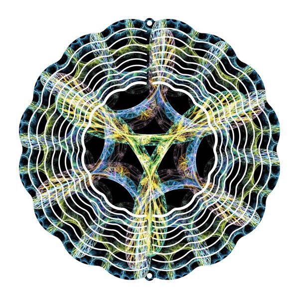 Our outdoor metal yard art has always been among our most popular products! Our Fractal wind spinner is a great looking piece of outdoor metal yard art! Featuring a beautiful "Fractal " image on our classic wind spinner. Like all our products, our Fractal Wind Spinner is powder coated for maximum rust resistance, making it ideal for use as outdoor metal yard art! The Fractal wind spinner comes with a swivel on top so all you have to do is buy it, fan it out, hang it up, and watch it spin in the wind! Dimensions: 36 in. L x 36 in. H x 1 in. D Weight: 11lb