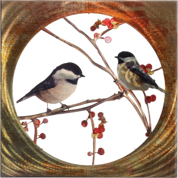 Our metal wall art chickadees scene design is among our most popular items! Like all our products our chickadee scene is powder coated for maximum rust resistance, making it ideal for use as indoor or outdoor metal wall art! Chickadee Scene comes with a hang tab for easy hanging! Dimensions: 16 in. L x 16 in. H x 1 in. D Weight: 3lb