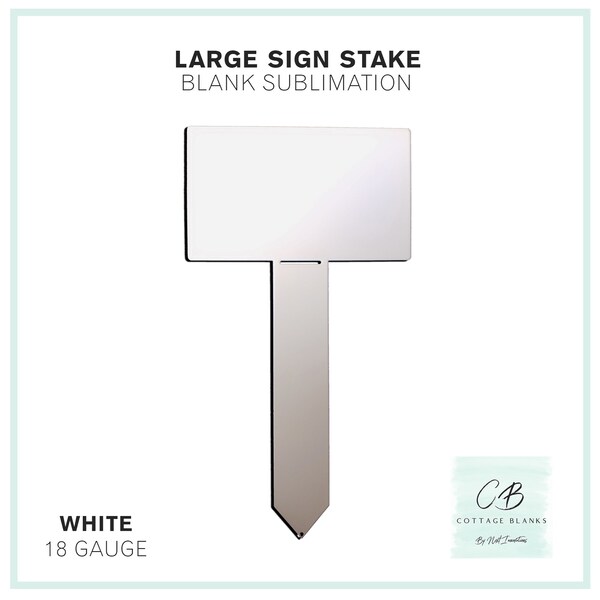 Large sign stake sublimation blank. White base coat with a semi-gloss finish. Pack of 12. Size: 14.5 inches tall x 8 inches wide