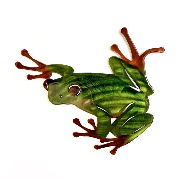 Our metal wall art tree frog piece is a very straight forward and traditional design. This piece of metal home decor still has it's own style! Proving that sometimes the simplest solution can be the best. Our metal wall art tree frog is a great addition to any home decor or outdoor lawn decor collection! Like all our products, our metal wall art tree frog is made of steel, making it among the most durable and long lasting products on the market! Our metal wall art comes with a hang tab on the back for easy hanging! Dimensions: 18 in. L x 14 in. H x 1 in. D Weight: 3lb