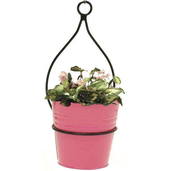 0337E S-2 HPK 6.5 in. Enameled Galvanized Planter with Iron Hanger, Hot Pink (Discontinued)