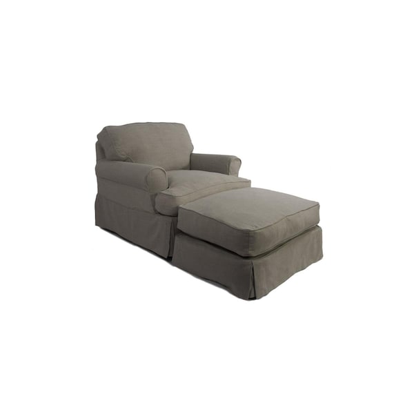 18 x 33 x 25 in. Horizon Slipcovered Chair & Ottoman - Light Grey (Discontinued)