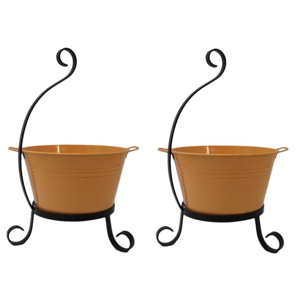 7065E SAFF S-2 Enameled Galvanized Steel Planter with Iron Stand - Set of 2