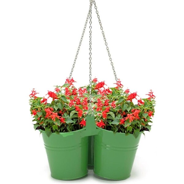 Enameled Galvanized Hanging 3 Planter Unit for 5.5 in. Plants - Apple Green