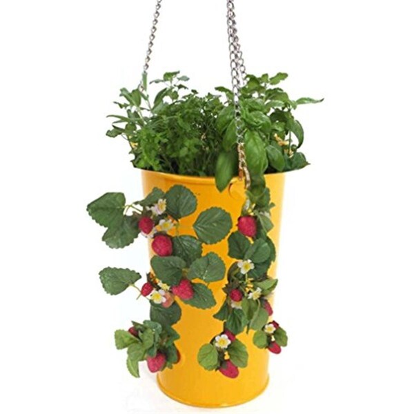 Enameled Galvanized Hanging Strawberry; Floral Planter - Saffron (Discontinued)