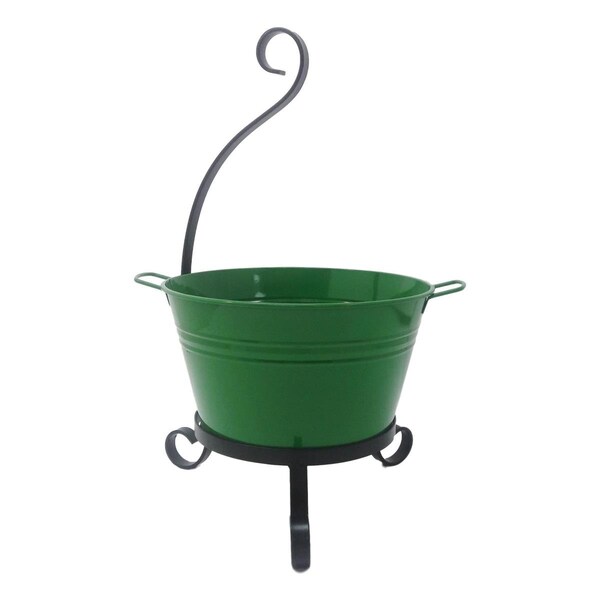 Enameled Galvanized Steel Planter with Iron Stand