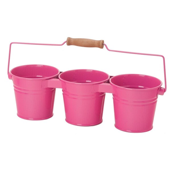 Enameled Galvanized Triple Planter, HotPink