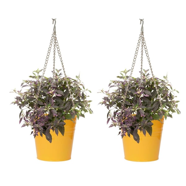 S/2 Enameled Galvanized Steel Hanging Planter