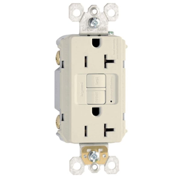 2097LACC10 20A 125V 2 Pole, 3 Wire Grounding Heavy Duty Self Testing GFCI Outlet, Light Almond