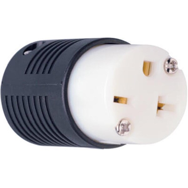 Features -Heavy Duty Straight Blade Connector. -20Amp. -Voltage - 250V. -Color - Black & White. -2 Pole 3 Wire Grounding. -NEMA 6-20r. -UL Listed Federal Specification CSA. -Extra Hard Use. -Ready To Wire See Through Terminal Chamber For Clear View Of Wire Connections. -Chemical & Impact Resistant Nylon Housing. -Matching Plug No.602-174. -Dimension - 3 x 1.63 x 1.63 in. -Item weight - 0.19 lbs.