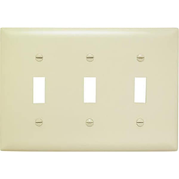 Features -3 Gang 3 Toggle Openings Urea Wall Plate. -Color - Ivory. -Dimension - 0.46 x 5 x 4.87 in. -Item Weight - 0.17 lbs.