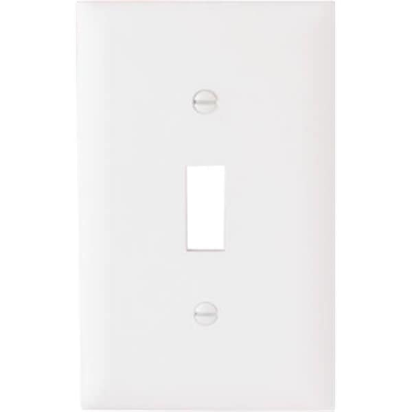 Features -Color - White. -1 Gang 1 Toggle Opening. -Nylon Wall Plate. -UL listed CSA. -3/16 in. Taller & Wider That Standard Size Wall Plate For Better Coverage. -Pre-Installed Mounting Screws For Easy Installation. -Molded Of Rugged Practically Indestructible Self Extinguishing Nylon. -Size - 2.94 x 4.69 in. -Dimension - 2.93 x 2.5 x 0.96 in. -Item Weight - 0.06 lbs.
