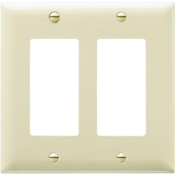 Features -Color - Ivory. -2 Gang 2 Decorator Openings. -Nylon Wall Plate. -UL listed CSA. -3/16 in. Taller & Wider That Standard Size Wall Plate For Better Coverage. -Molded Of Rugged Practically Indestructible Self Extinguishing Nylon. -Size - 4.75 x 4.69 in. -Dimension - 3.25 x 5.62 x 0.3 in. -Item Weight - 0.08 lbs.