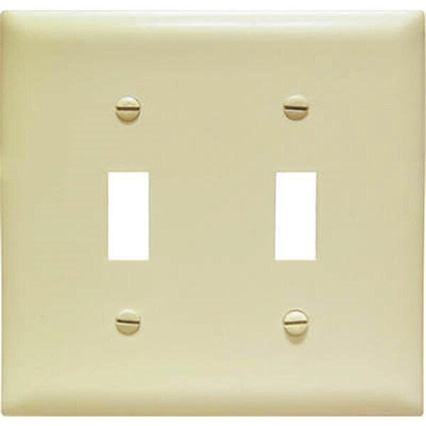 Features -Color - Ivory. -2 Gang 2 Toggle Openings. -Nylon Wall Plate Junior Jumbo. -UL listed CSA. -3/16 in. Taller & Wider That Standard Mid Size Wall Plate For Better Coverage. -Molded Of Rugged Practically Indestructible Self Extinguishing Nylon. -Size - 4.93 x 4.87 in. -Dimension - 3.25 x 5.62 x 0.3 in. -Item Weight - 0.11 lbs.