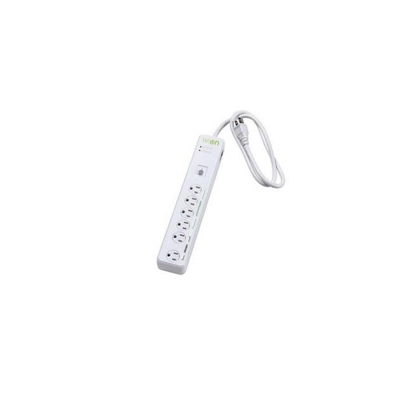 WiOn Indoor Wi-Fi Surge Protector, with 900 joules of protection. 4-outlets are Wi-Fi are controlled by your smart device and 2-outlets are always on, or controlled by the master switch. Features 3 foot cord, sliding safety covers, surge protection indicator, ground indicator and lit reset On/Off power/15A circuit breaker switch. Turn on or off your lights or electronics with your Smartphone or tablet from anywhere. Connect up to 12 Wi-Fi outlets to your smart device. Program devices to turn on or shut off at specific times, with to-the-minute accuracy, and programmable for weekdays, weekends, or every day; up to 12 on/off settings per day. Unique timer functions like, Sun Tracker Technology, can turn on or off at sunset or sunrise, countdown mode, can turn off after selected time, or random settings, can turn lights on and off periodically to give your home a lived in look. Manual override allows you to take immediate, standard control.