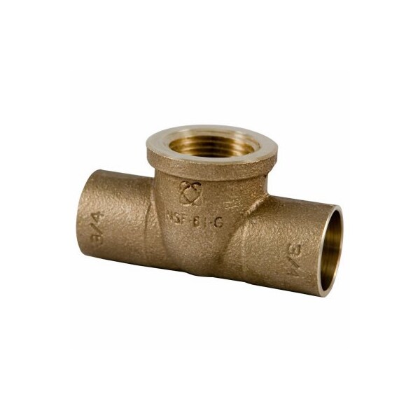 12 CxCxF Tee, U712, features solder cups on the run and female NPT threads on the branch, allows for a connection to be made in continuous pipeline and branch out to a different direction while adapting from a solder connection to a threaded connection, leadfree