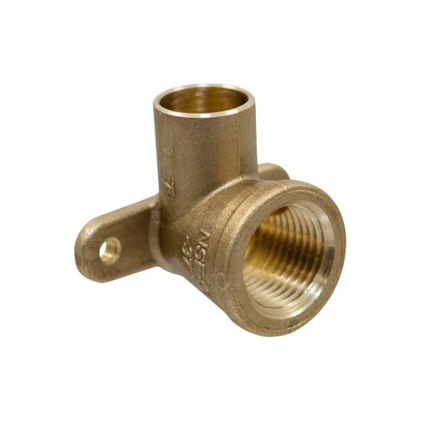 12 CxF 90 Drop Elbow, U70735, features a solder cup, female NPT threads, and mounting ears, provides a means of changing the pipeline direction 90 degrees and adapting from a solder connection to a threaded connection, leadfree