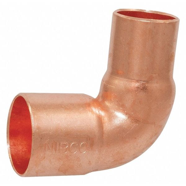 Sweat Fitting Elbow, Application Air, Gases, Potable Water, Fitting Side A Connection Type Cup, Fitting Side B Connection Type Cup, Fitting Side A Copper Tube Size 3/8 in, Fitting Side B Copper Tube Size 1/4 in, Fitting Material Wrot Copper, Fitting Side A Tube Outer Diameter 1/2 in, Fitting Side B Tube Outer Diameter 3/8 in, Maximum Operating Pressure 623 psi @ 200 Degrees F, Maximum Operating Temperature 400 Degrees F, Specific Fitting Shape 90 Degrees Reducing Elbow