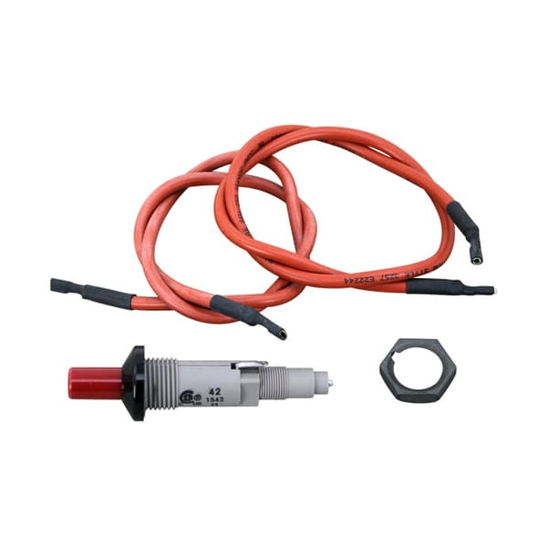 Piezo Ignitor W/ Dual Lead Wires. Fits 3/4" Hole.;Includes: Orange Electrode Wire Lead, 20" Wire 1/8" Round;Female Push-On X 1/8" Flat Female Push-On # 38-1556;Orange Ground Wire Lead, 20" Wire 1/8" Flat Female Push-Ons;At Both Ends # 38-1555;For Electrode # 44-1527;Nieco Broiler 940, 960, 962.;Series: 300, 400, 500, 600, 800.