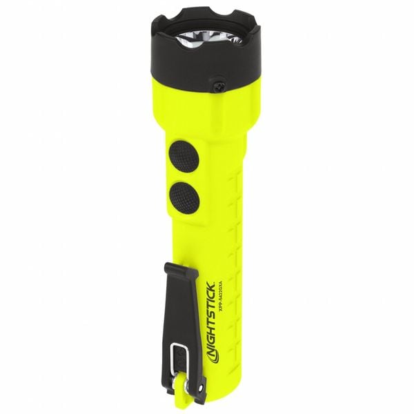 Intrinsically Safe Dual-Light Handheld Flashlight, Battery Chemistry Alkaline, Battery Size AA, Includes Batteries No, Number of Batteries 3, Rechargeable No, Beam Pattern Flood, Spot, Body Color Black, Green, Body Material Polymer, Lighting Technology LED, Number of Light Output Modes 3, Maximum Beam Distance 187 m, Maximum Brightness 285 lm, Run Time at Maximum Brightness 10 hr, Weight with Batteries 6.9 oz, Includes Charger No, Beam Color White, Beam Focus Fixed, Includes Secondary Light Yes