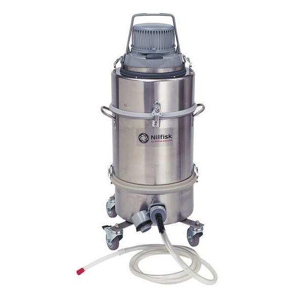 Critical Area Vacuum, Critical Area Application Mercury Recovery, Vacuum Pickup Type Wet/Dry, Vacuum Power Source Corded, Tank Material Stainless Steel, Tank Size 3.25 gal, Tank Dry Capacity 2 1/4 gal, Vacuum Collection Type Disposable Bag, Vacuum Filtration Type HEPA, Vacuum Air Flow 24 cfm, Static Pressure 82 in, Peak Horsepower 1 1/2 hp, Power 1,100 W, Current 10 A, Voltage 120V, Hose Dia. 9/16 in, Hose Length 7 ft, Height 30 in, Length 19 in, Width 18 1/2 in, Weight 63 lb, Sound Level 61 dB