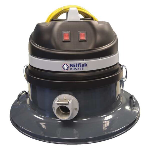 Vacuum Head, Vacuum Power Source Corded, Number of Power Heads 1, Vacuum Pickup Type Dry, Vacuum Filtration Type HEPA, For Drum Capacity 55 gal, Vacuum Air Flow 99 cfm, Static Pressure 70 in, Sound Level 78 dBA, Vacuum Hose Dia. Not Included, Vacuum Hose Length Not Included, Number of Motor Stages 2, Average Brush Life 1,200 hr, Peak Horsepower 2 hp, Power 750 W, Current 12.5 A, Voltage 120 V, Height 22 in, Diameter 24 in, Power Cord Length 25 ft, Standards Certified HEPA