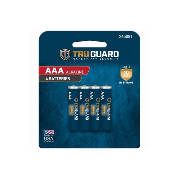 True Value TruGuard, 4 Pack, AAA Alkaline Batteries, Carded, Ready Power Technology Increases Shelf Life, Mercury Free Formula