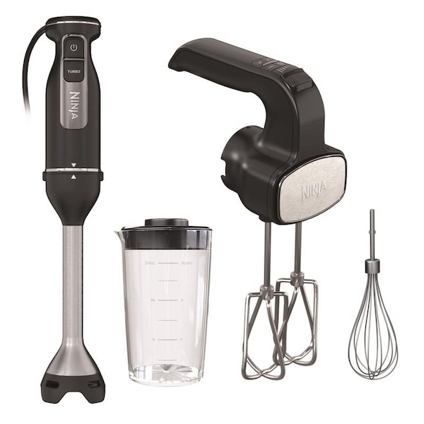 With the Ninja Foodi Power Mixer System, you can tackle all your essential food prep tasks in no time. Its 750-peak-watt power-dense motor lets you power through tough ingredients, evenly mix cookie dough, and blend drinks or soups. Simply connect the PowerBase with one of two attachments to transform it into whatever you need it to be. Mix, whisk, and blend-all in one.