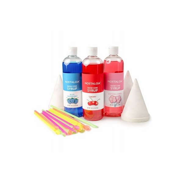 The perfect addition to any Nostalgia snow cone or shaved ice maker Just add freshly shaved ice to a snow cone cup and pair with your favorite snow cone syrup for a delightfully icy treat Mix and match flavors for even more fun