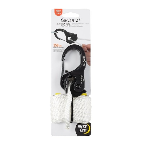 This rugged cast aluminum rope tightener combines a strong carabiner with a cam locking mechanism, allowing you to secure, tension and connect serious loads using a rope Clip the carabiner to a fixed anchor point, then slide your rope through the cam mechanism for a knotfree and worryfree connection, easily releasing your rope with a simple pull
