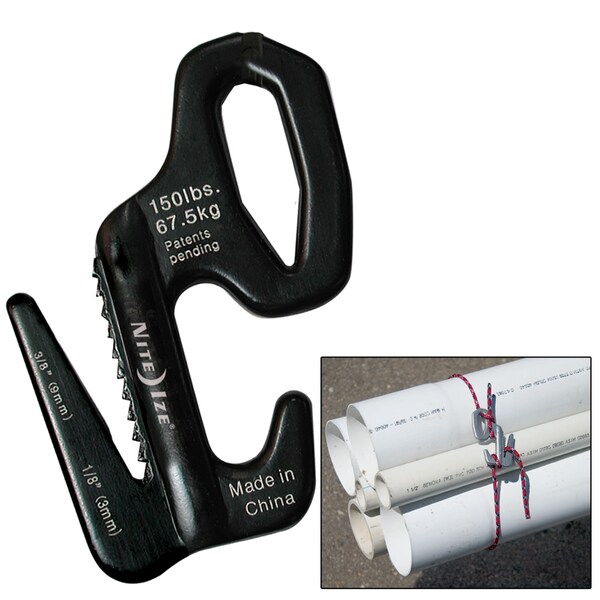 Figure 9 Small. If you've ever had problems with losing tension in your rope while tying a knot, or wasted time untying a difficult knot, here's your hassle-free solution. Our innovative, patented Figure 9 tightens, tensions, and secures ropes without knots,The Nite Ize Figure 9 Small makes tightening any line a stress-free task. From bundling fire wood for your next camping trip to tying down trunk lids, this handy tool handles small tie-down jobs quickly and keeps the tension where you need it. Loop your rope through its strategically designed prongs, pull it tight, and it stays that way,A smart alternative to complicated cam-locking devices or bungee cords, our Figure 9 also controls the release of high tension, avoiding sudden and dangerous unloading,Product Details, Two attachment methods for ultimate versatility, Loop System, Fixed End System , Laser engraved instructions ensure ease in operation, Lightweight, strong aluminum construction, Fits rope sizes 1/16" (2mm) to 3/16" (5mm), Load Limit: 50 lbs (22.5kg), Product weight: .13 oz. (3.6g), Product dimensions: 1.125"W x 1.5"H x .125"D (28 x 40 x 3mm) ,