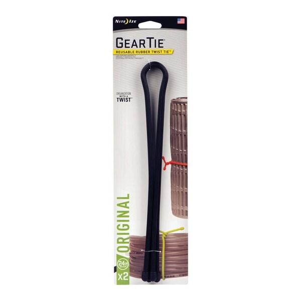 Our 24 inch Nite Ize Gear Tie is the great organizer for bigger unwieldy items. Made of a sturdy bendable wire interior and a soft durable rubber exterior it is flexible strong and incredibly handy. Organize major appliance and electronic cords roll and wrap that yoga mat keep your skis and skates together and latch it onto bigger tools. It's tough enough to hang a full can of paint from the side of a ladder a heavy lantern from a beam or tree branch and so much more.