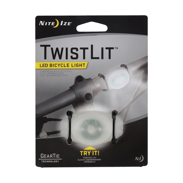 With a quick turn of the wrist the versatile visible Nite Ize TwistLit attaches to anything on wheels making it easy to spot in every kind of light Featuring a longlasting LED module the TwistLit is designed with a curved back that rests snugly against the round surfaces on your bike or scooter Grooves on each side hold sturdy flexible rubber Gear Ties in place with ends to wrap through over around or under the front and rear of bicycle handle bars seat posts or racks of nearly any size The bright batterypowered LED is activated with a simple push of a button white in front illuminates your path and tells people you're heading their way red clearly marks the rear wheel and signals your orientation to other commuters Endlessly versatile secure and easy to reposition the TwistLit is perfect for bikes scooters jogging strollersanything on wheels you want people to see