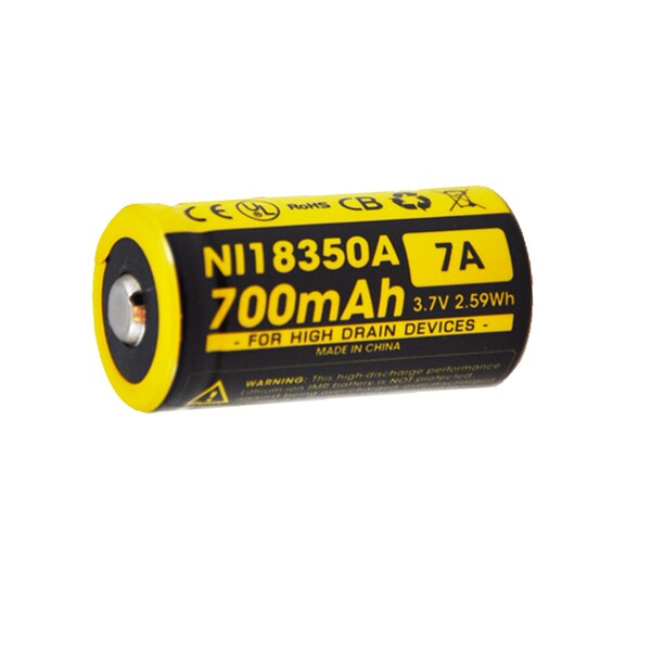 NITECORE NI18350A 700mAh 18350 rechargeable li-ion battery for high drain devices such as NITECORE EC11 flashlight and more