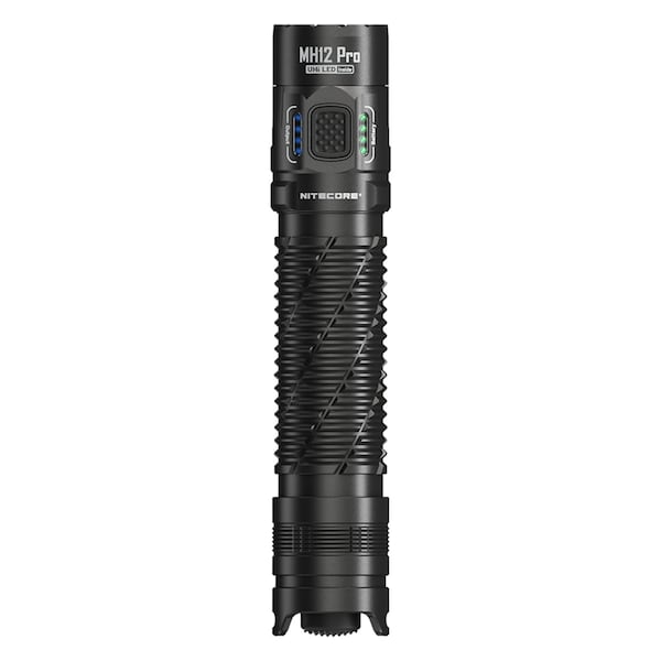 The Nitecore MH12 Pro rechargeable flashlight is incredibly bright yet still compact enough to serve as a duty light to carry every day. With the innovative NiteLab UHi 40 LED, the MH12 Pro boasts a 3300 lumen output and a 552 yard throw, more than the length of four football fields added together. You'll be well-prepared for any situation with its five brightness levels, as well as strobe, beacon, and SOS modes. The level indicators beside the mode button will help you identify the brightness level. Moreover, the MH12 Pro automatically reduces brightness when it detects an obstruction at close range to prevent overheating and blinding reflection. The MH12 Pro comes with a high-capacity 5300mAh battery and can be rapidly charged through its built-in USB-C port. Power indicators next to the mode button display the remaining battery level. Once fully charged, the MH12 Pro can achieve a maximum runtime of over 650 hours on its lowest mode. Crafted from aero-grade aluminum alloy with an HA III hard-anodized finish, boasting an IP68 waterproof rating, and featuring advanced temperature regulation, the MH12 Pro is an indispensable companion day in and day out. Whether you're using it for daily tasks, patrolling, camping, or hiking, the MH12 Pro is equipped for any environment.