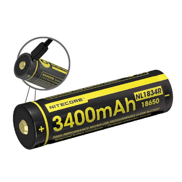 The NITECORE NL1834R 18650 battery is a revolutionary battery designed with a built-in micro-USB charging port making charging easier than ever! No more need for an extra charger as this battery can be charged directly using a standard micro-USB charging cable (sold separately). Simply plug the battery into an available power source and a red indicator light under the + pole (positive) will turn green upon completion. Alternatively, these batteries can still be charged on an external charger if desired. The NL1834R batteries are designed for powering high drain devices such as high-output flashlights, lanterns, headlamps, and bike lights, as well as a variety of other appliances and devices. With built in smart charging circuitry and other integrated safety features through-out, this battery will safely work in the majority of button-top compatible devices.