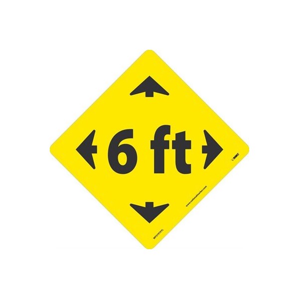 6 Ft Arrow Graphic, Black On Yellow, Walk On Floor Sign, 8 X 8, Texwalk