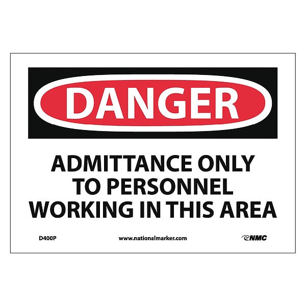 ADMITTANCE ONLY TO PERSONNEL WORKING IN THIS AREA